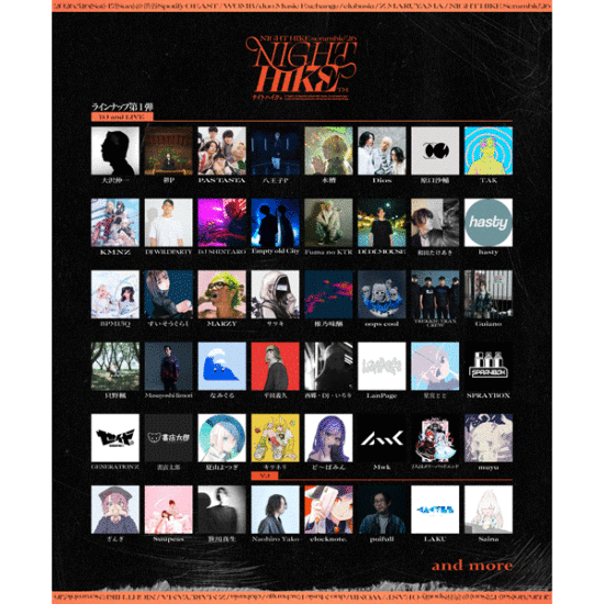 2026年5月16日-17日(土-日) 「NIGHT HIKE - scramble - ‘26」 @ Spotify O-EAST / WOMB / duo Music Exchange / clubasia / Z MARUYAMA 11:30 リストバンド交換開始 / 12:30 開場 / 13:30 開演 ■第1弾ラインナップ DJ&LIVE: 大沢伸一 / 鬱P / PAS TASTA / 八王子P / 水槽 / Dios / 原口沙輔 / TAK / KMNZ / DJ WILDPARTY / DJ SHINTARO / KOTONOHOUSE / Empty old City / Fuma no KTR / DÉ DÉ MOUSE / 和田たけあき / STARKIDS / hasty / BPM15Q / すいそうぐらし / MARZY / サツキ / 椎乃味醂 / oops cool / TREKKIE TRAX CREW / higma / Guiano / 只野 楓 / 笹川真生 / Masayoshi Iimori / なみぐる / 平田義久 / 西郷・DJ・いろり / LanPage / 星宮とと / kegon / miru / SPRAYBOX / Generation Z / 夏山よつぎ / キツネリ / ど〜ぱみん / MANON / 書店太郎 / Mwk / ふたりはメリーバッドエンド / muyu / ざんぎ / DJはるぽん with Suupeas / and many more VJ: Naohiro Yako / clocknote. / poifull / LAKU / Saina / and more ■PRICE Phase 1 (販売期間:1/24〜1/31) 【2DAYS】15,000円税込 +2Drink 【DAY 1】8,000円税込 +1Drink 【DAY 2】8,000円税込 +1Drink 【プライオリティー 2DAYS】16,000円税込 +2Drink 【プライオリティー DAY 1】9,000円税込 +1Drink 【プライオリティー DAY 2】9,000円税込 +1Drink Phase 2 (販売期間:2/21〜2/28) 【2DAYS】16,000円税込 +2Drink 【DAY 1】8,500円税込 +1Drink 【DAY 2】8,500円税込 +1Drink 【プライオリティー 2DAYS】17,000円税込 +2Drink 【プライオリティー DAY 1】9,500円税込 +1Drink 【プライオリティー DAY 2】9,500円税込 +1Drink Phase 3 (販売期間:3/21〜3/31) 【2DAYS】17,000円税込 +2Drink 【DAY 1】9,000円税込 +1Drink 【DAY 2】9,000円税込 +1Drink 【プライオリティー 2DAYS】18,000円税込 +2Drink 【プライオリティー DAY 1】10,000円税込 +1Drink 【プライオリティー DAY 2】10,000円税込 +1Drink Phase 4 (販売期間:4/21〜4/30) 【2DAYS】18,000円税込 +2Drink 【DAY 1】9,500円税込 +1Drink 【DAY 2】9,500円税込 +1Drink Phase 5 (販売期間:5/9〜5/15) 【2DAYS】19,000円税込 +2Drink 【DAY 1】10,000円税込 +1Drink 【DAY 2】10,000円税込 +1Drink ◯U-19 (販売期間:1/24〜販売枚数上限に達するまで継続販売) 【2DAYS】12,000税込 +2Drink 【DAY 1】7,000円税込 +1Drink 【DAY 2】7,000税込+1Drink ■TICKET チケット販売URL zaiko ■問い合わせ NIGHT HIKE official website
